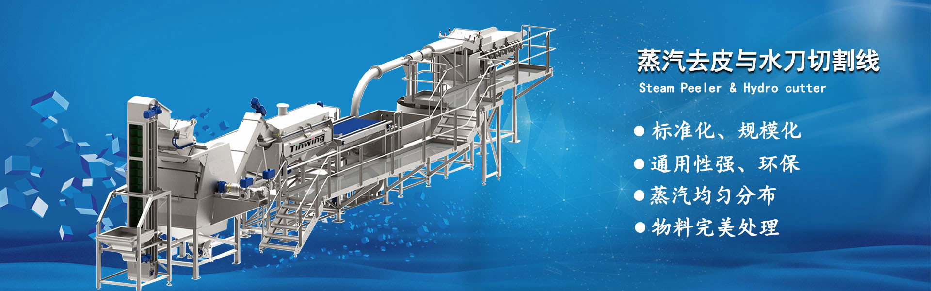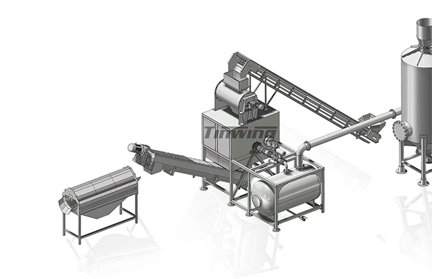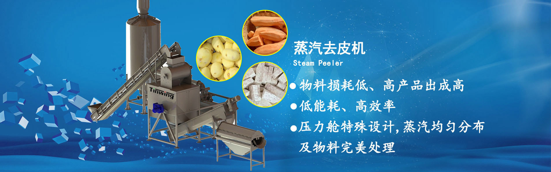 輸送系統(tǒng)用于清洗好的物料輸送至壓力倉(cāng),當(dāng)壓力蒸汽達(dá)到設(shè)定壓力時(shí)開(kāi)始去皮工作。它利用蒸汽的特性,...